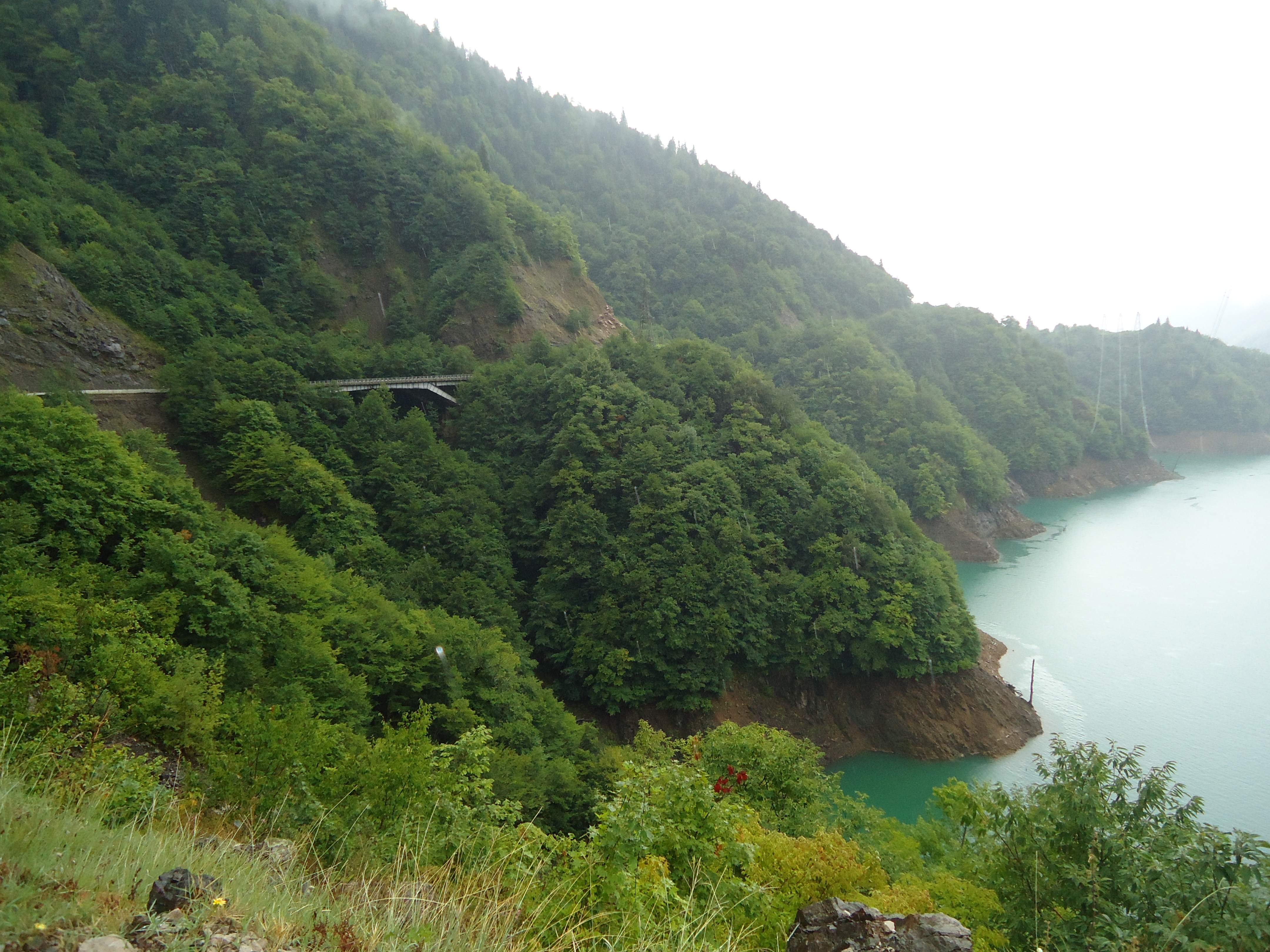 Svaneti is best reached from Zugdidi. The road is quite good. The road, strewn with rock falls, follows the side of the valley high above the reservoir. We stopped our car and enjoyed the breathtaking beauty of Inguri Reservoir. It was a bit rainy but the reservoir hasn’t lost its haughtiness.