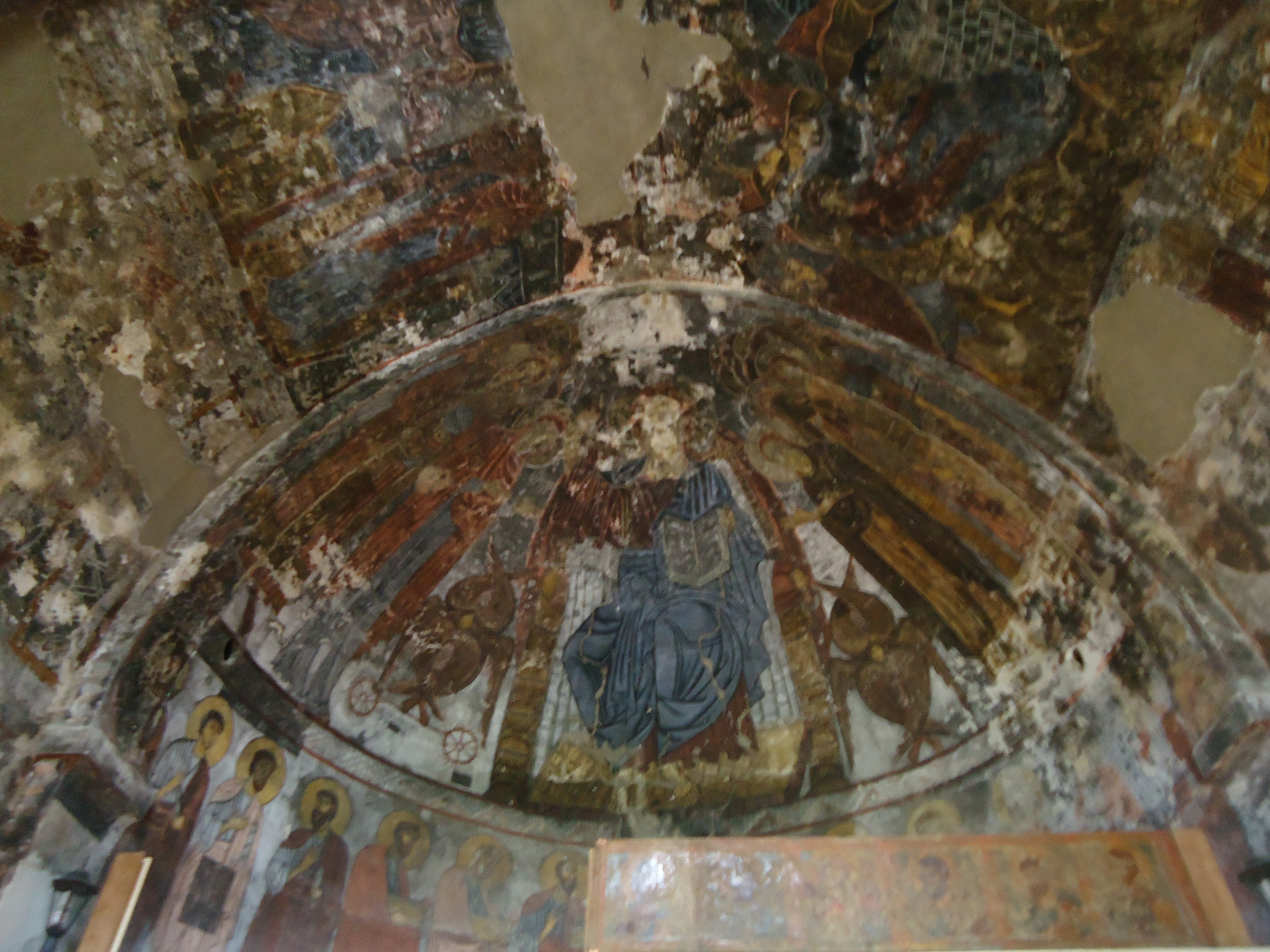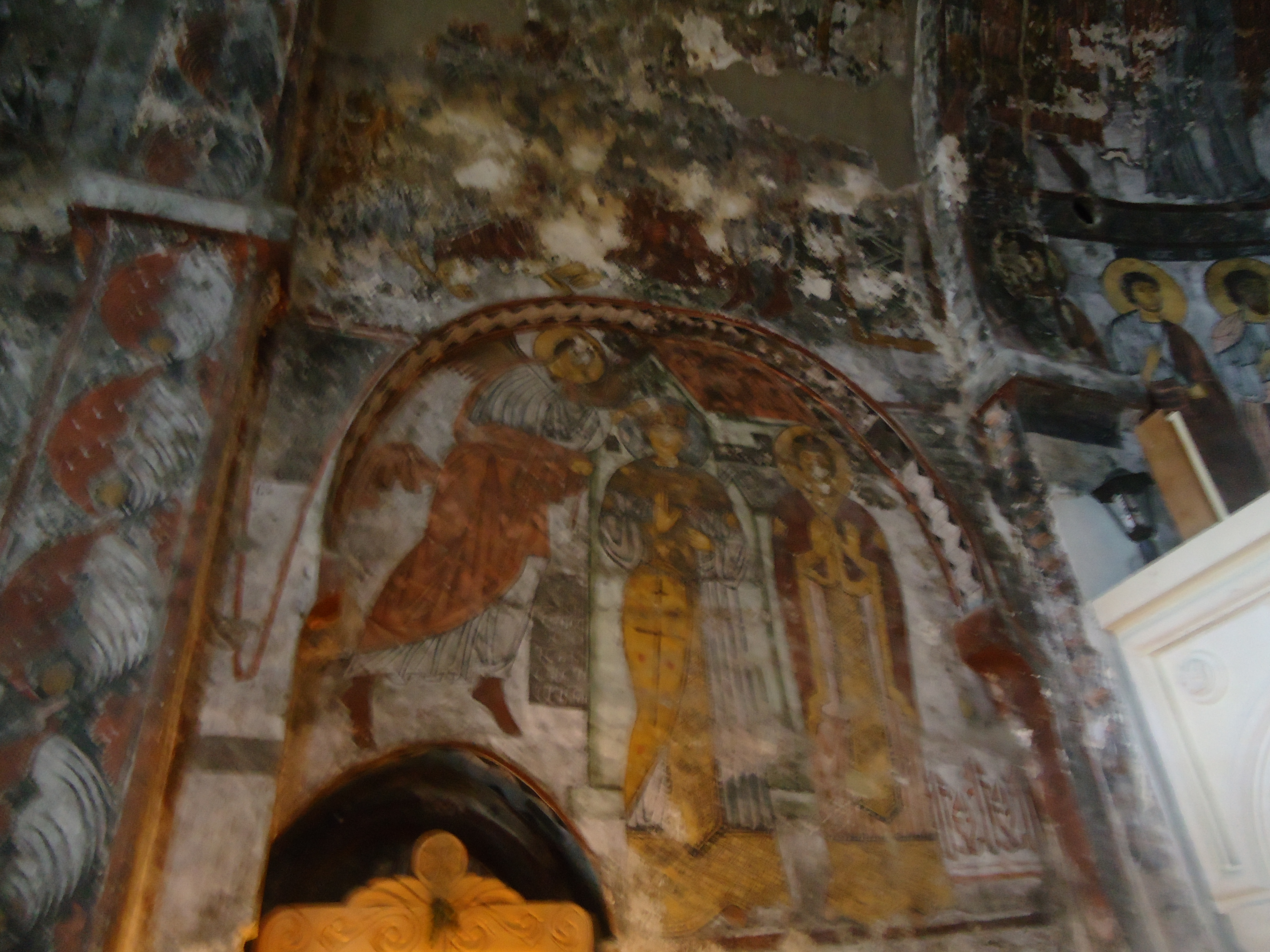 There are many churches in Svaneti. In the entrance of the town there is the church of St. George, built in 19th century to replace an 11th century ruin. The church is famous for a good metal icon of St. George killing Diocletian and old painted icons of Christ and the Virgin and the Child. Outside, there is the grandest grave of the climber Mikhail Khergiani (1932-1969), who died in the Italian Dolomites.