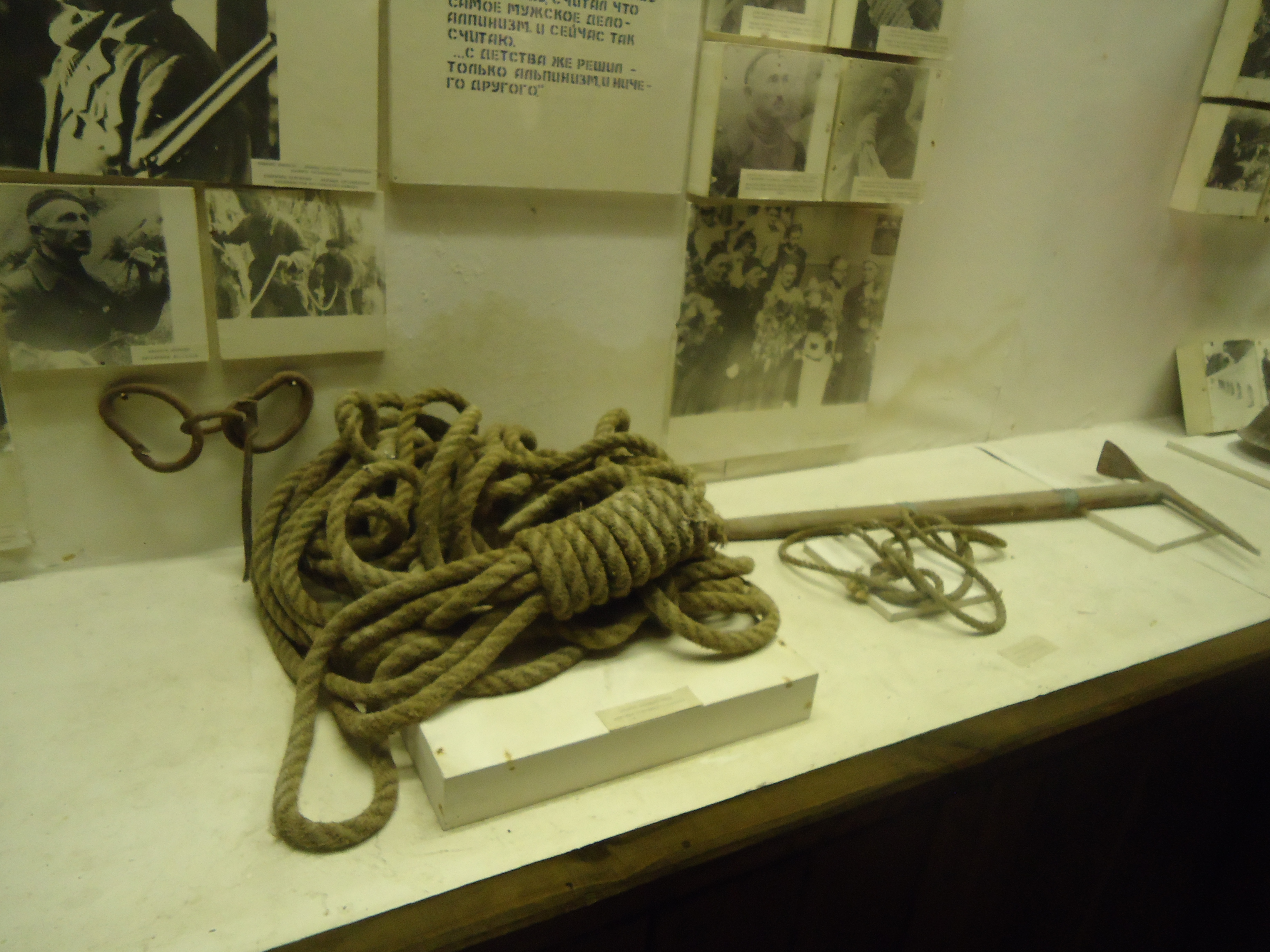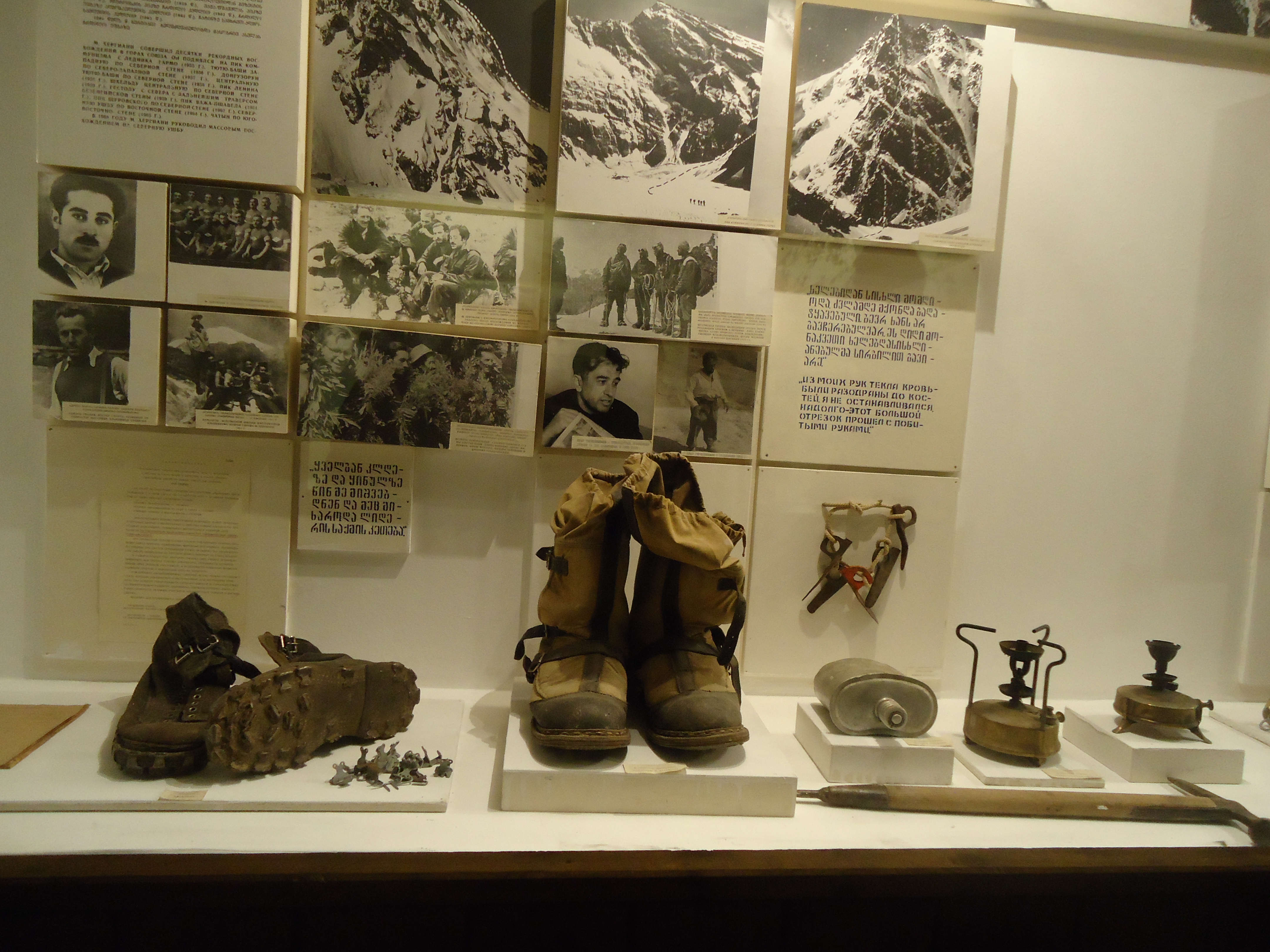 After then we visited Mikhail Khergiani House Museum. The museum was founded in 1983. Mikhail Khergiani became famous in Georgia and abroad by participating in many mountain expeditions and climbing competitions. Khergiani was distinguished by his exquisite rock climbing abilities; he saved many people during mountain rescue missions. Khergiani died tragically in Italy, in the Dolomites Mountains in 1969. The exposition in the museum documents episodes from his life. The materials exhibited in the museum belong to him. The daughter of Nazo Khergiani guided us and told many interesting details about her uncle.