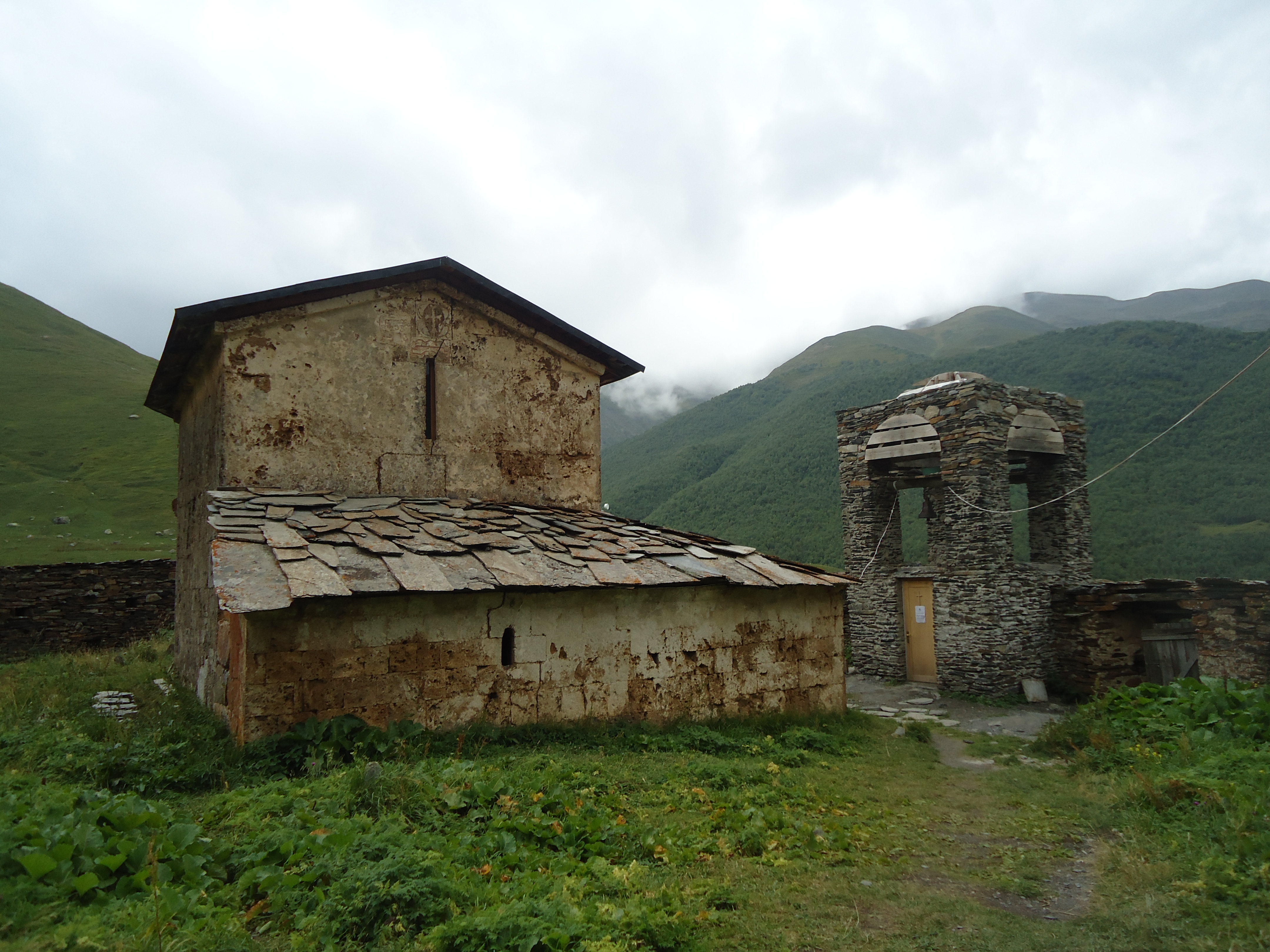 The Lamaria complex includes a large stone chair with quite some intrigue attached to it. Some centuries ago, Ushguli was at the top of “ubatono” (Free, or Lord-less) Svaneti, and liked to keep things that way. Lower down the province was ruled by the Dadeshkeliani family, based in Etseri. One day the head of this family travelled to Ushguli and suggested that it, too, come under Dadeshkeliani control and begin paying tribute. Bad news for Ushguli! The man must die! But… if anyone killed him, the family of the one dirtying his hands would then be targeted for revenge by the Dadeshkelianis in the infamous Svan manner, and a tit-for-tat situation would ensue, more killings in the two families continuing possibly for centuries. Ushguli was in a quandary. A plan eventually emerged.