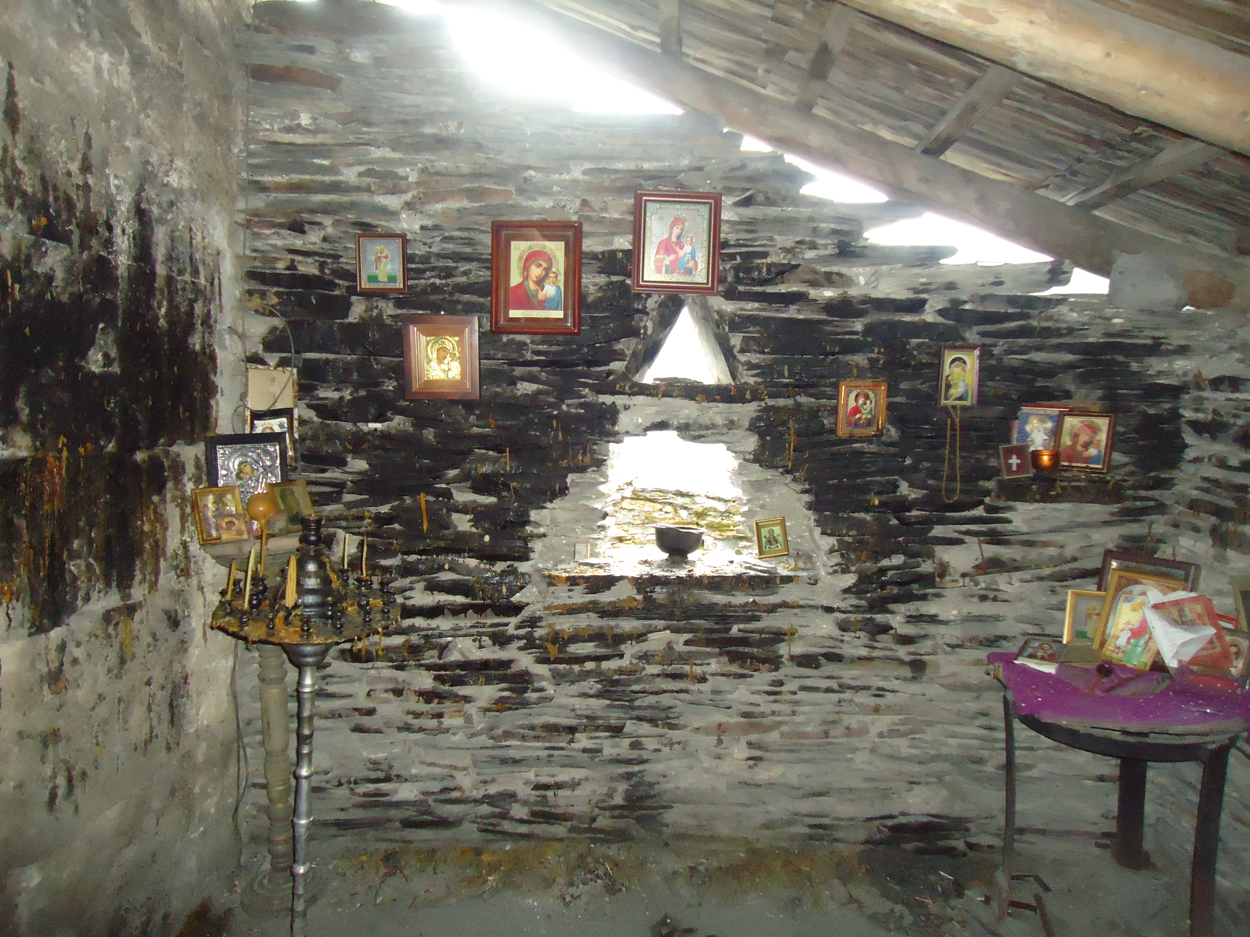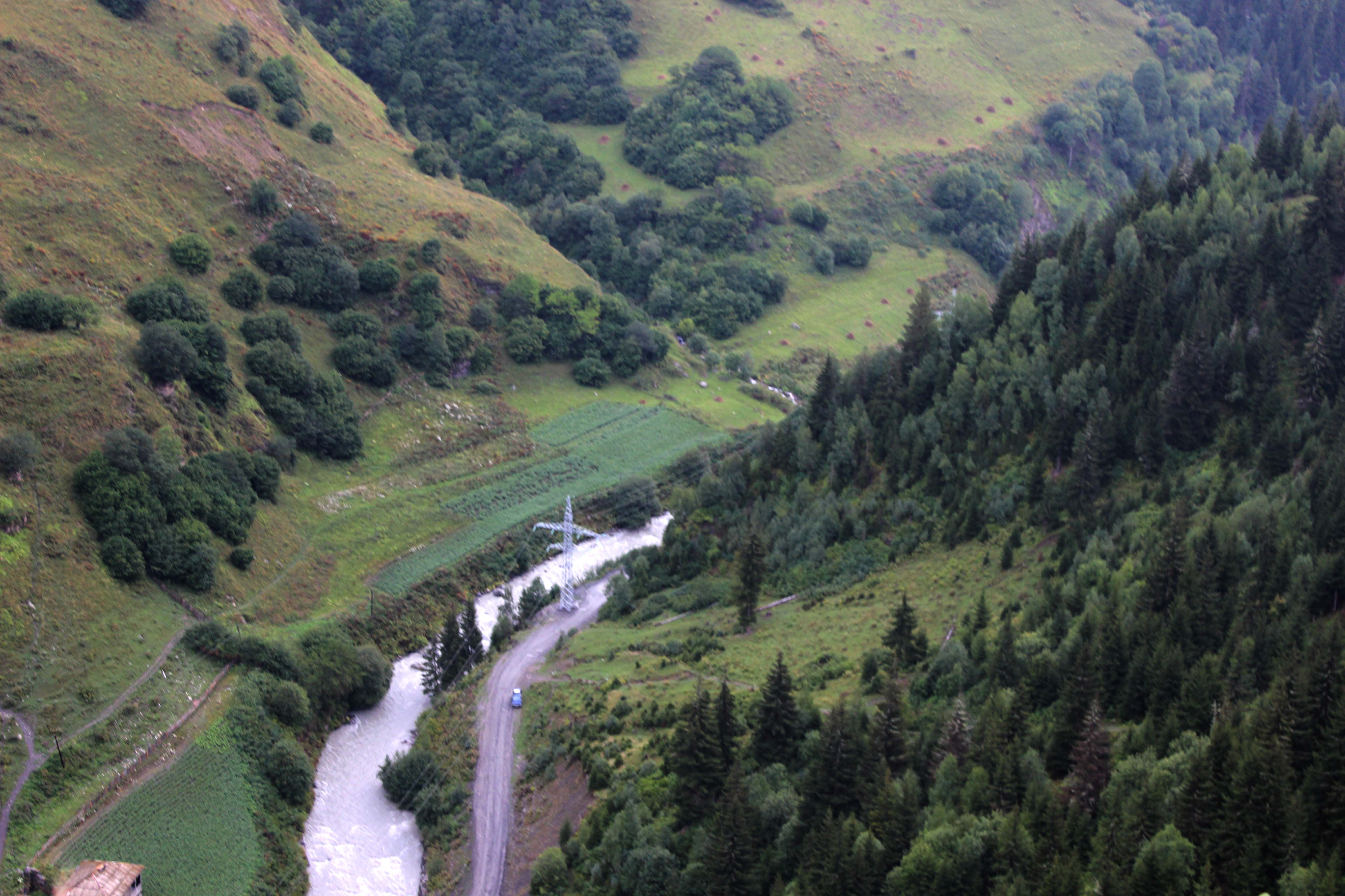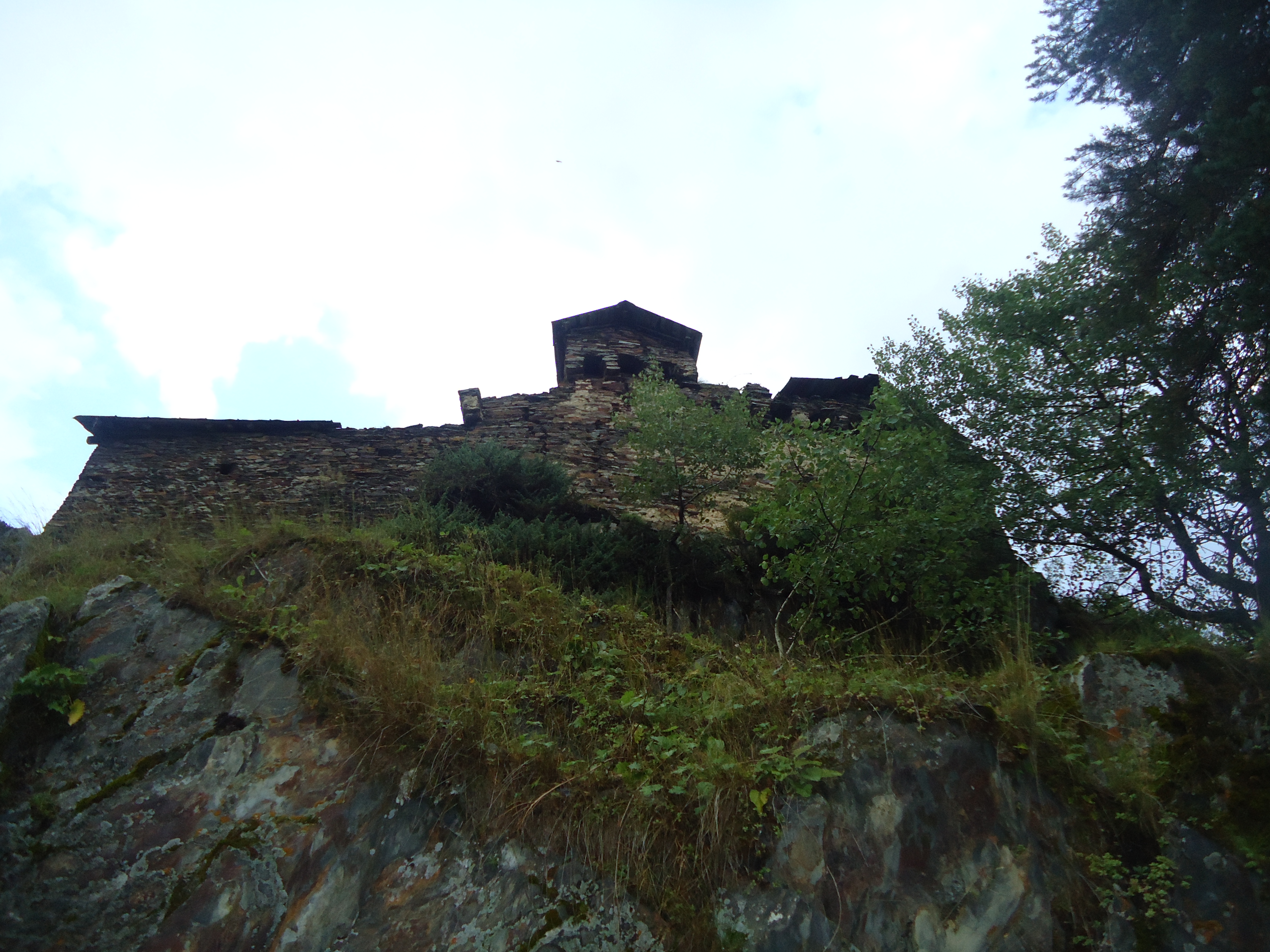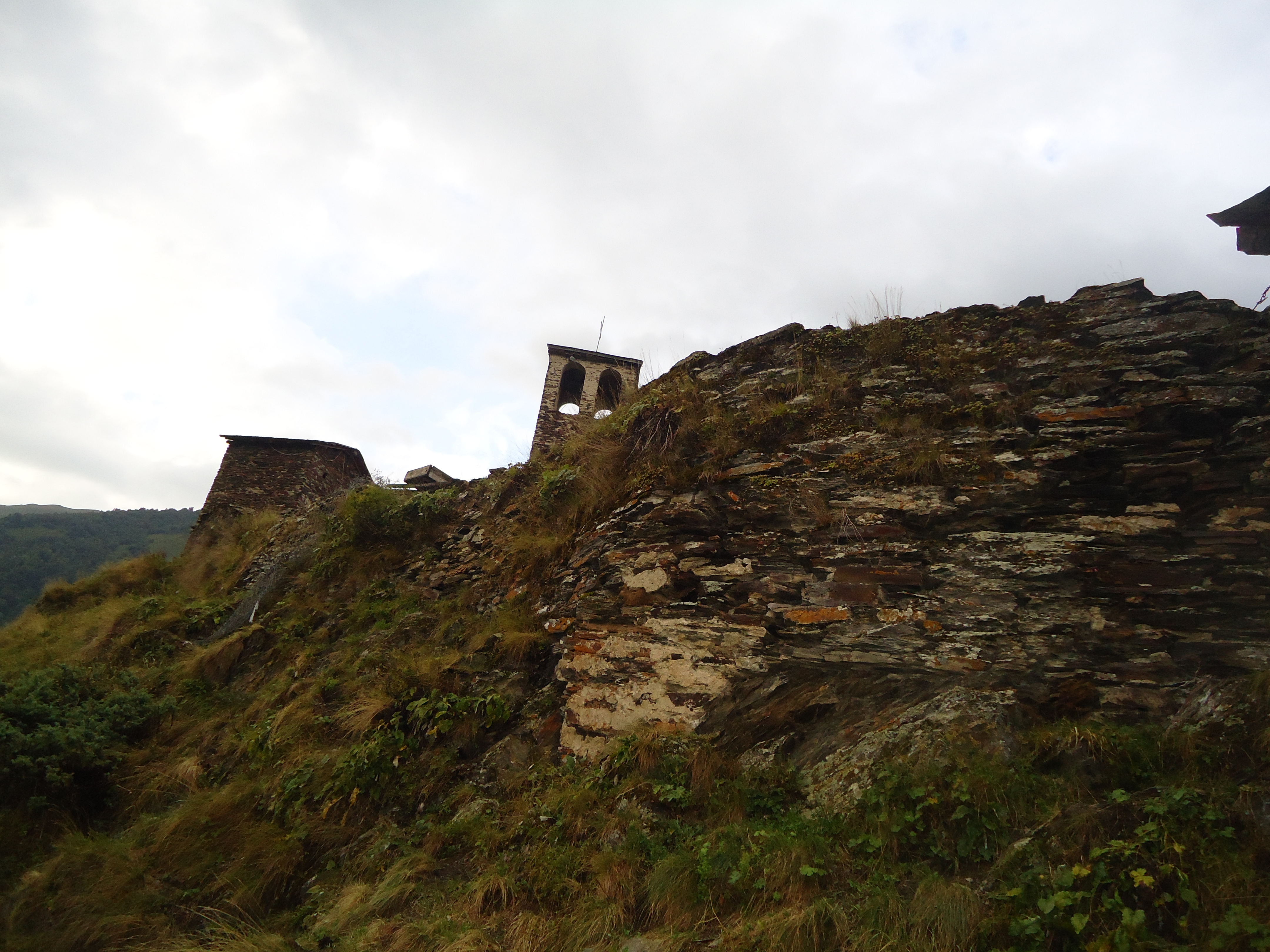 We walked 1 km and saw the shapes of the church. There is a twelfth century church of St. Kvirike, which lies on the mountaintop above the tiny village of Kala. Kvirikoba takes place on July 28 every year. It commemorates the martyrdom of two early Svan Christians. There is one legend about the celebration. Long ago, during the festival of Kvirikoba, a young man and young lady fell in love, but the man was already married. The man didn’t know what to do. He is married but loves another. So he decided to go hunting. He sees a stag. He shoots at it, but misses, he is too far away. As he walks closer, the ground beneath him gives way and he falls through the snow and into the river. When his love finds out of his death, she goes into mourning, wearing black, staying in her room weeping constantly. Months pass and she still won’t take off her mourning clothes, or even really stop crying. She barely eats, won’t talk to anyone. Her father and brother implore as to what that can do to alleviate her pain. She answers that the soul of her lover is in the river, and that she must live on the river, so that her tears can flow into his soul. They build her the tower “A tower of Love” and she remains there till her dying breath, weeping for her lost love.