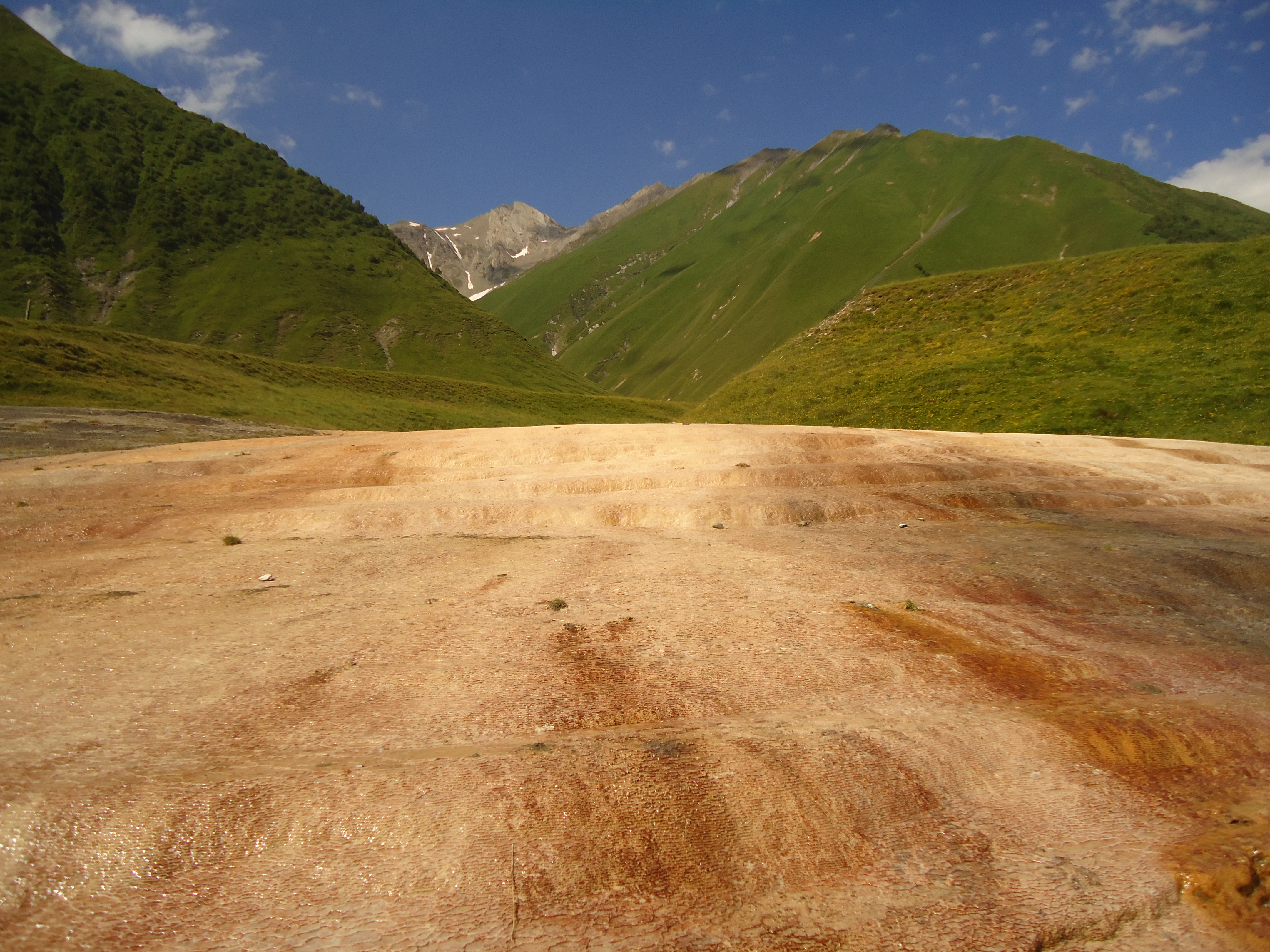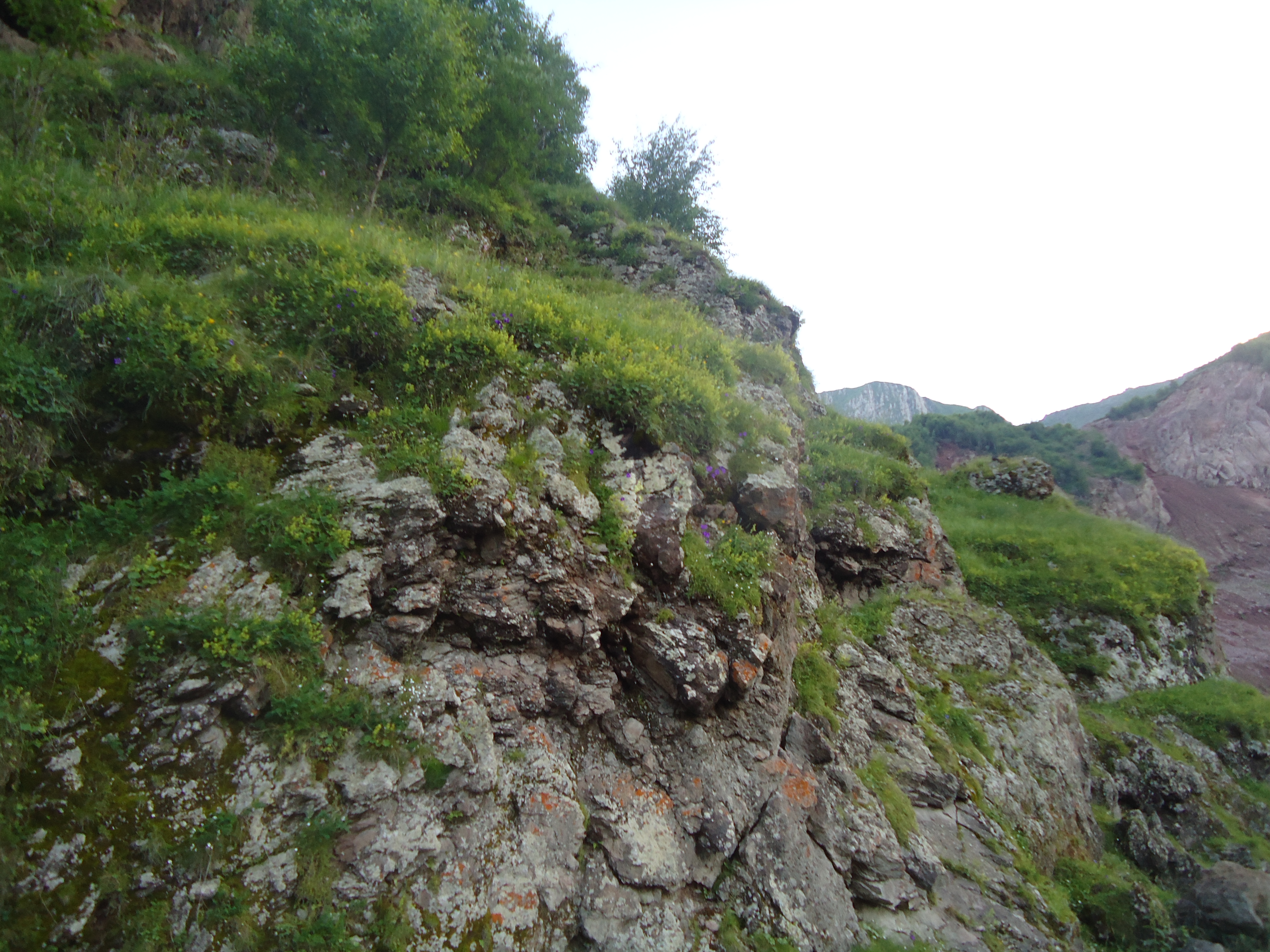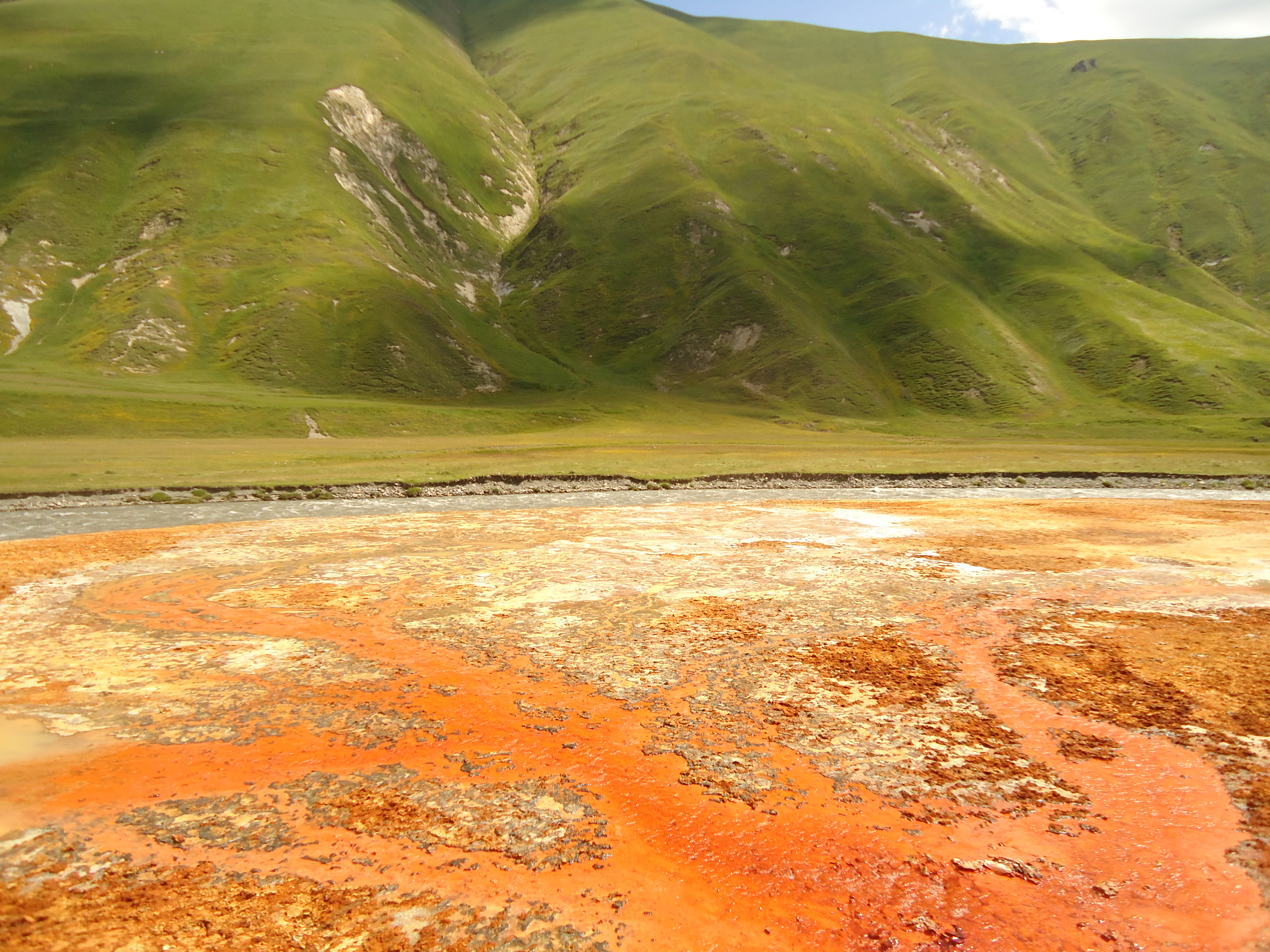 Truso gorge is rich in hydrocarbonate mineral waters and one can observe traces of these mineral waters along the whole gorge. Therefore banks of the river Tergi are of various colorings.