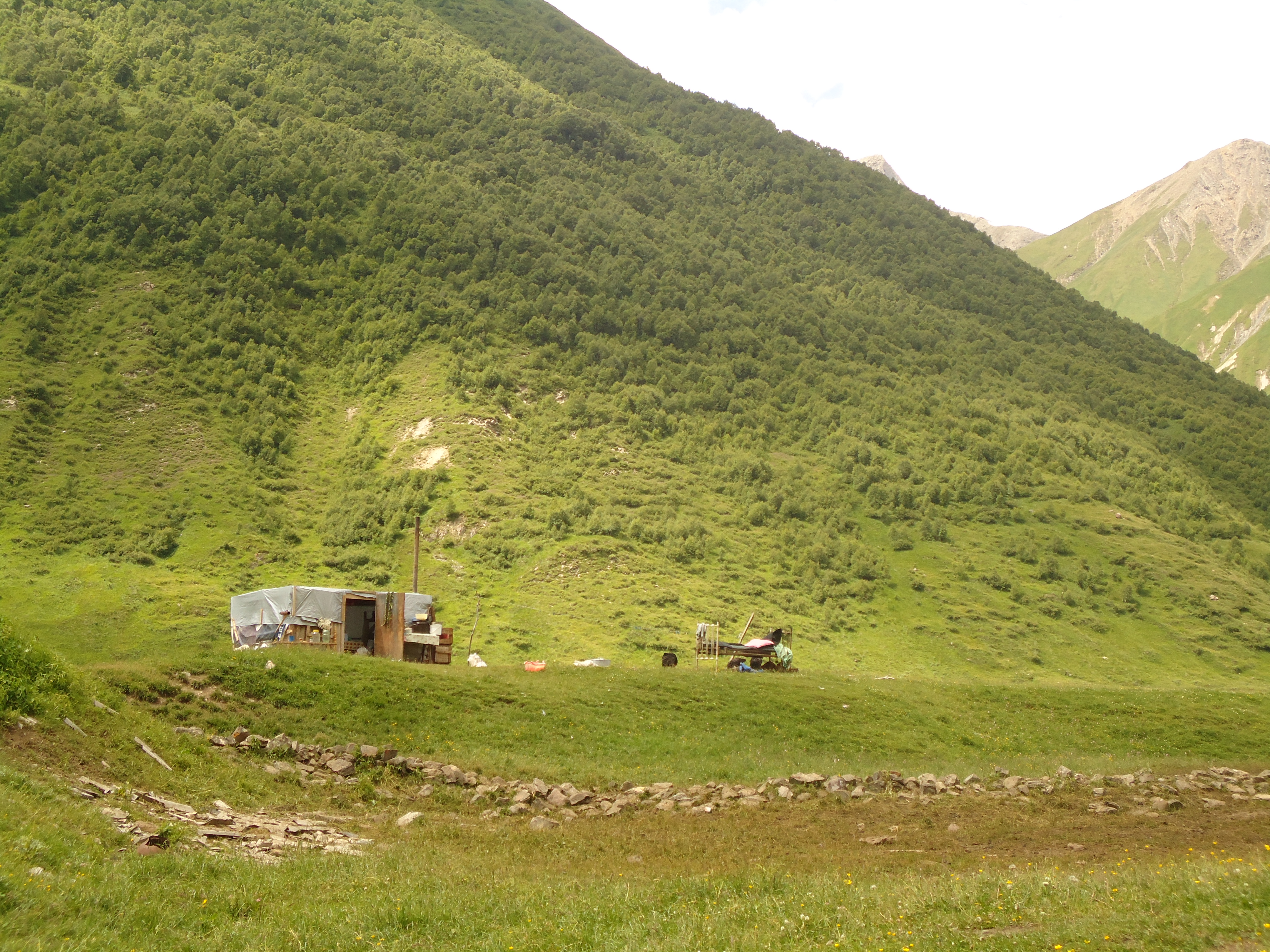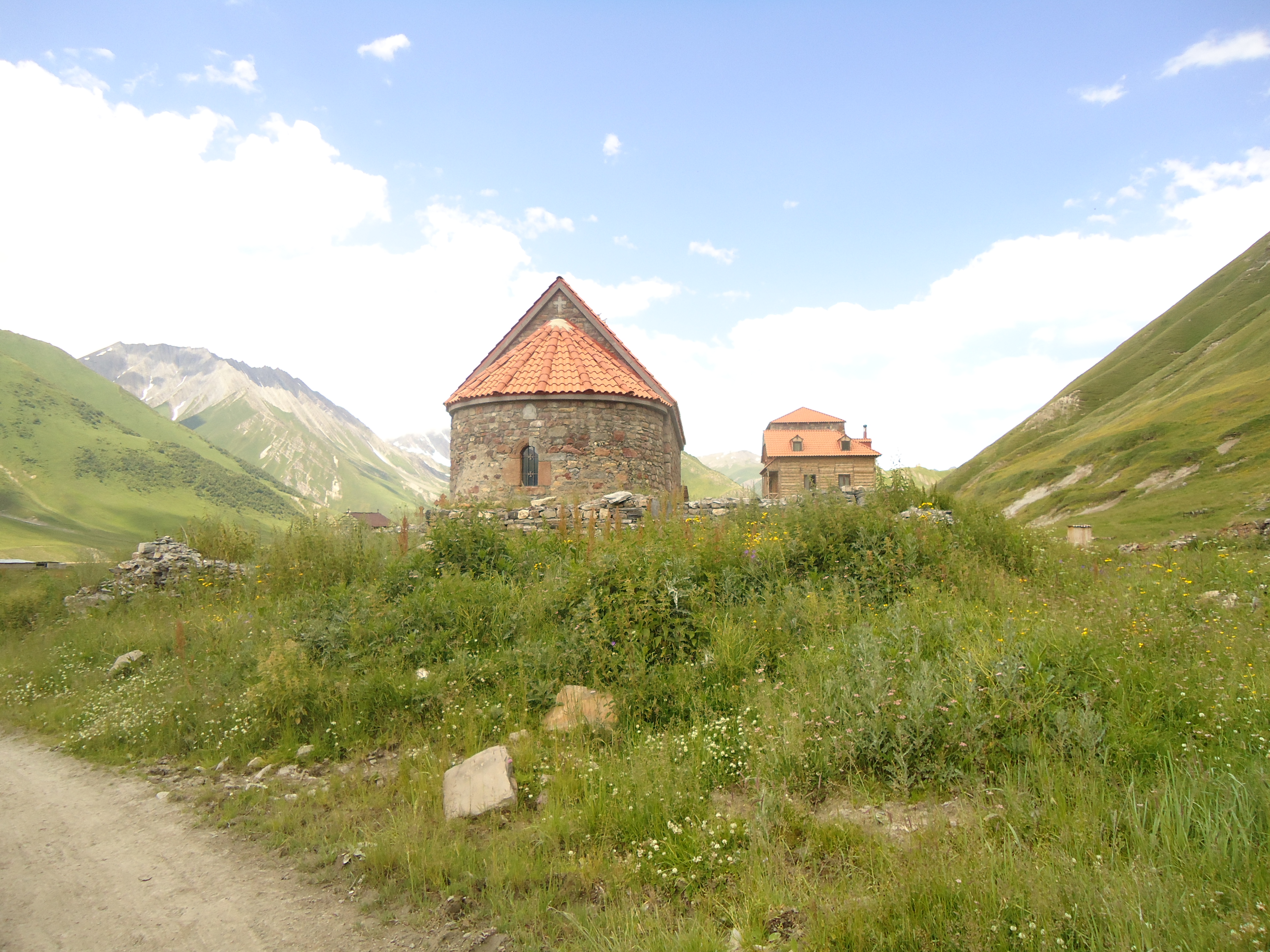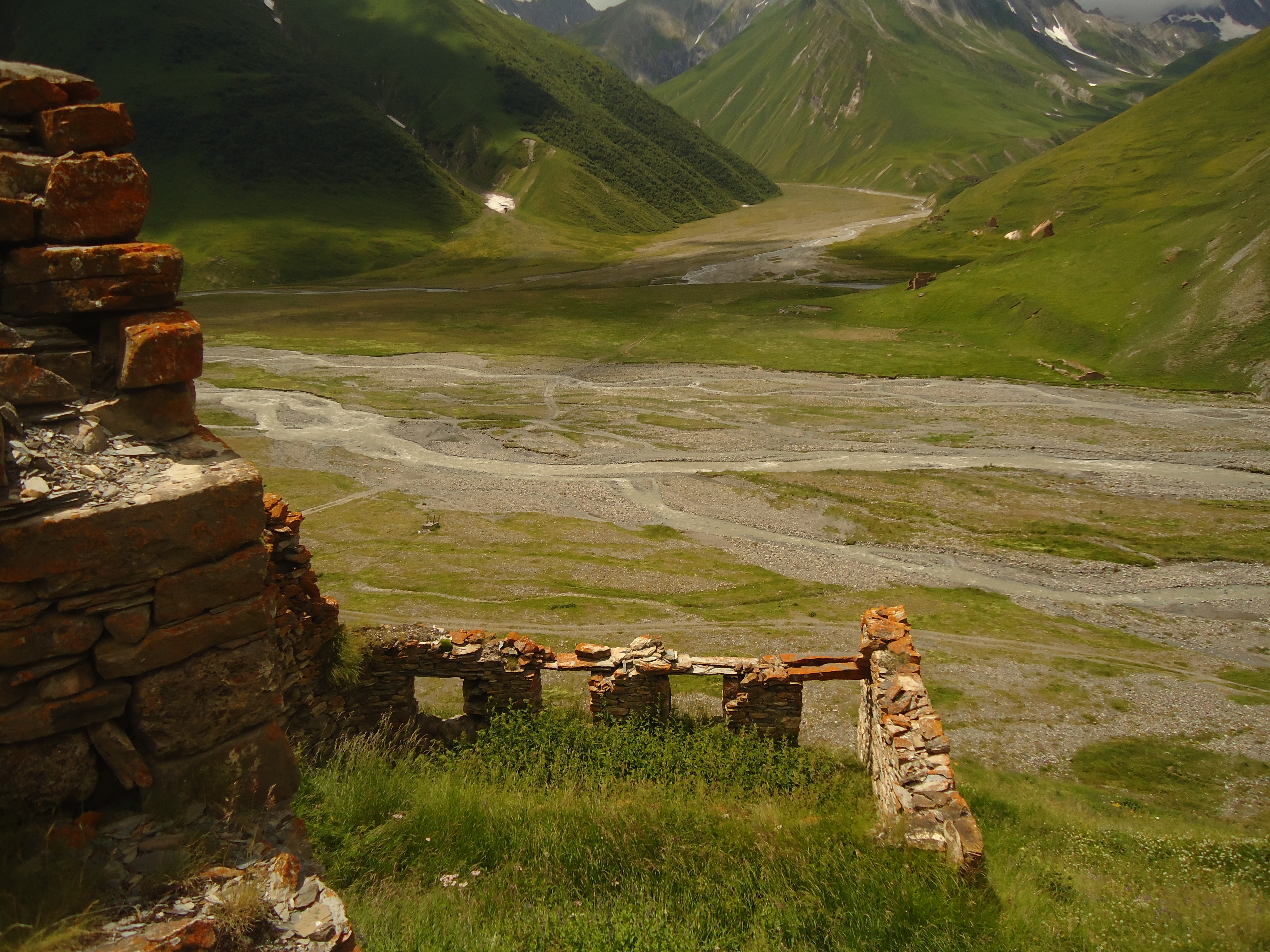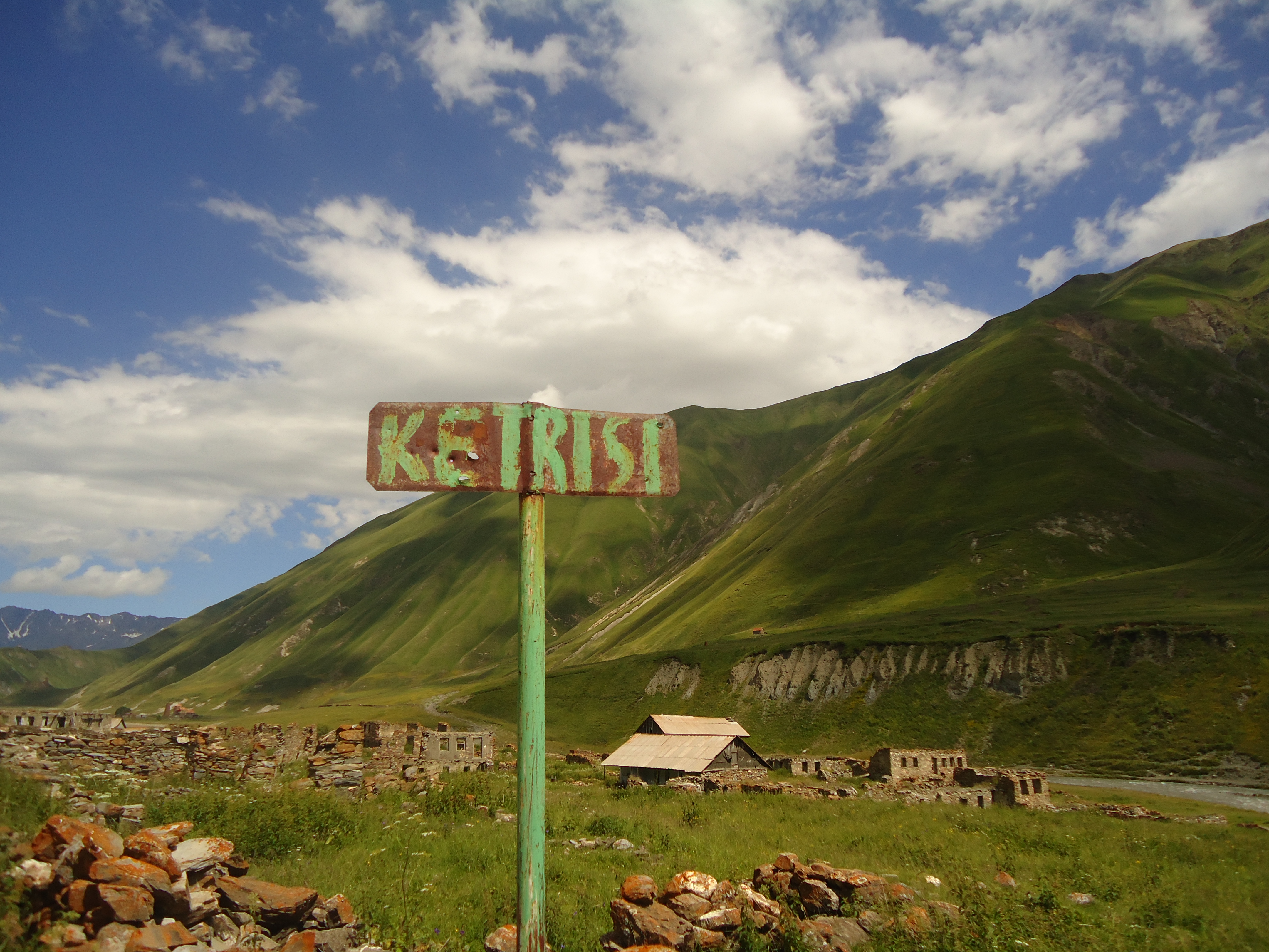 There were 12 villages in the gorge, though today they are abandoned. The road goes along the river Tergi. The first village is Nogkhau.Nogkhau is an Ossetian word and means “new village” in Georgian. Today only ruins are left in the Village, no inhabitants any more, though early in 90s about 20 families lived there. You can see a small shrine there.