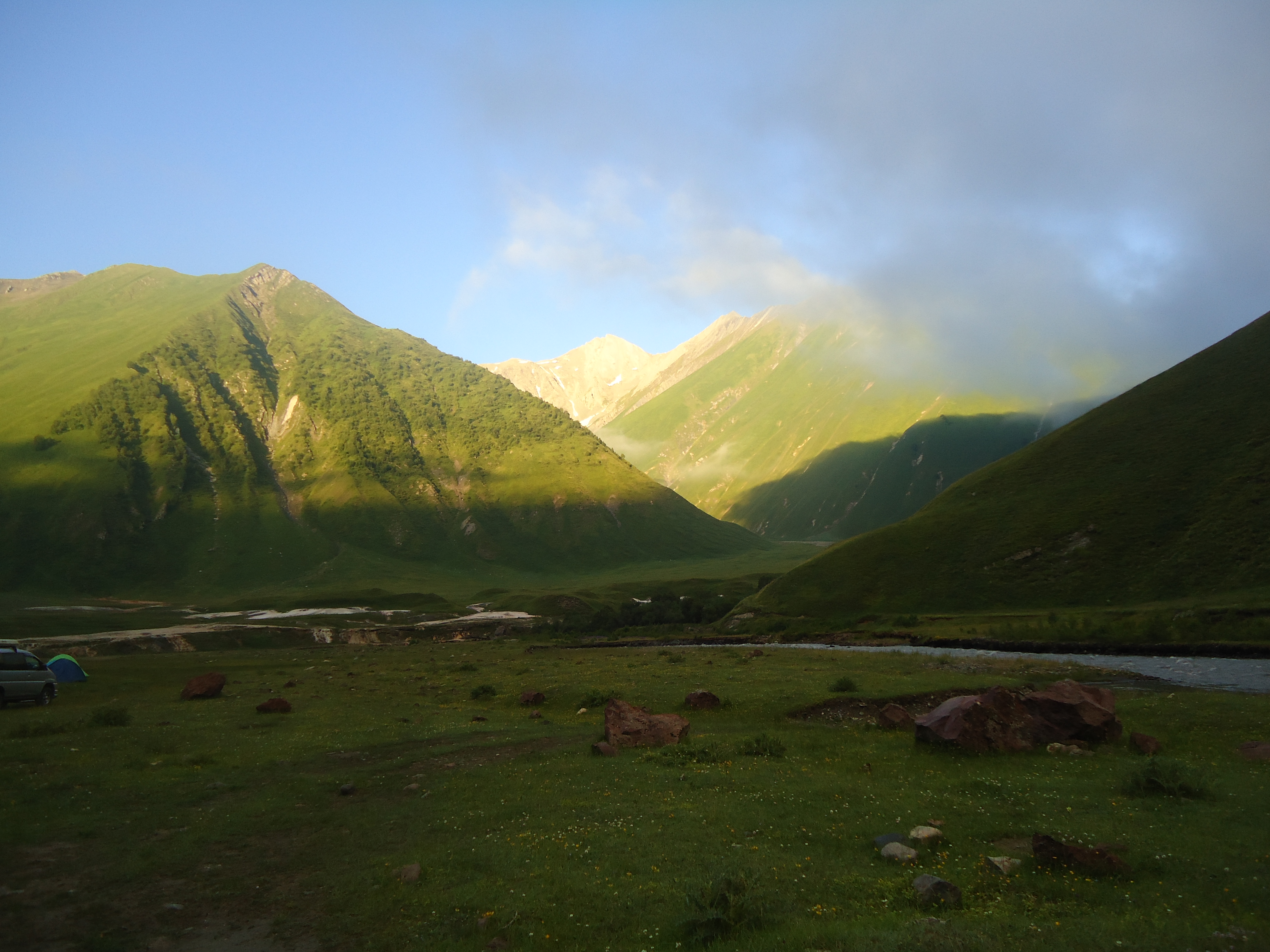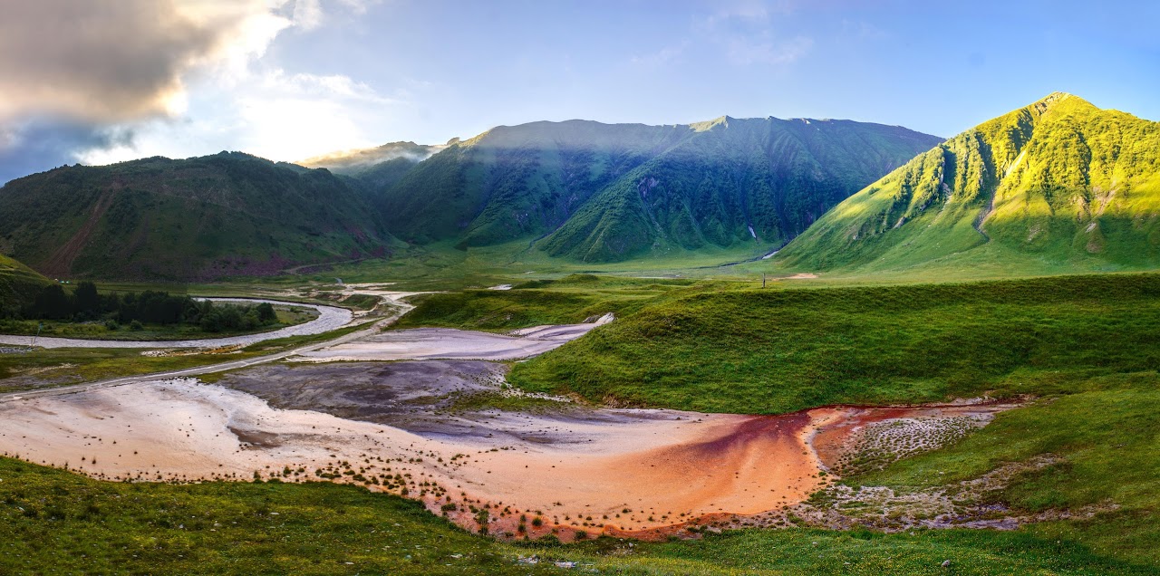 Truso gorge and Valley is located on the northern slope of the Caucasus towards Russia, along the river Tergi. The Truso gorge and Valley is bordering Russia to the north and South Ossetia (Tskhinvali Region) to the west (the area occupied by Russia). The length of the gorge is 25 km. It takes 4-6 hours depending how far up the valley you go.