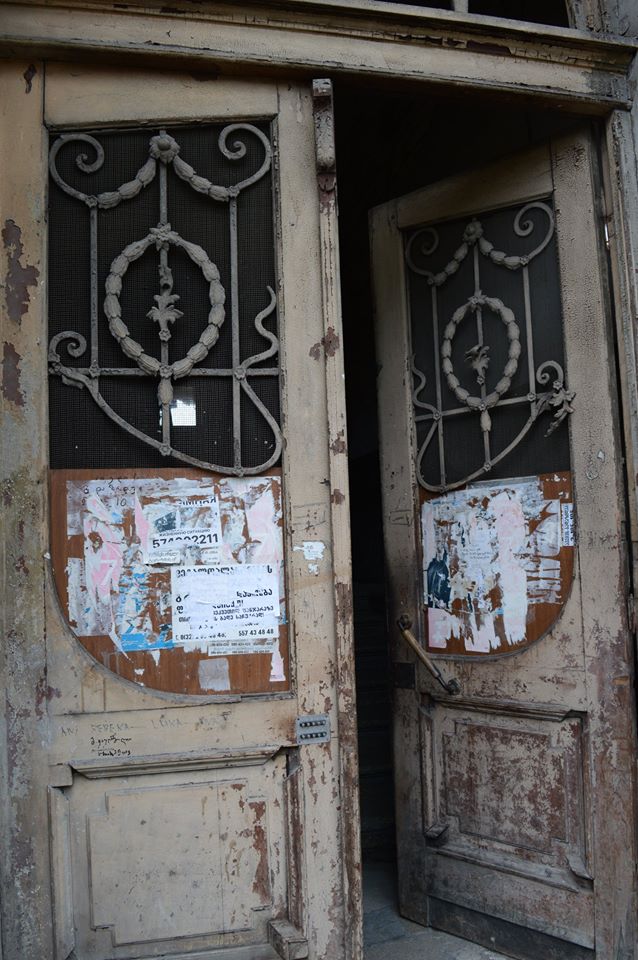 Walking along Tsinamdzgvrishvili street I stopped at one door where a kid was merrily jumping to and fro. Seeing me with camera, she stopped and stared at me. In the entrance I noticed an inscription on the floor and tried to read. ‘Sakartvelo’ is written here, she ‘explained’. Who told that? It’s impossible, I said, as Sakartvelo has more letters than it is here. My classmate, she said with a naive face. Then she carefully looked at the inscription and read out ‘1910-1912’. It was the date of building the house. There should be a surname of the architecture but it was unfortunately destroyed. The kid seemed to have heard some stories about the building and decided to take me to her neighbours. She took me to Misha, who knew the history of the building. Misha showed Tbilisuri hospitality by inviting me in his flat. As he said the house was built in 1910-1912 and belonged to Ghukasov. The architect was a famous Italian architect-Andreoletti, though he wasn”t sure. As Misha’s father said, the entrance hall was painted with beautiful landscapes, but during the soviet era the walls were whitewashed. Another example of Tbilisuri hospitality was aunt Tamriko (Tamriko deida), who despite being ill invited me in her room to show her beautiful fireplace. As she said the fireplace is English.